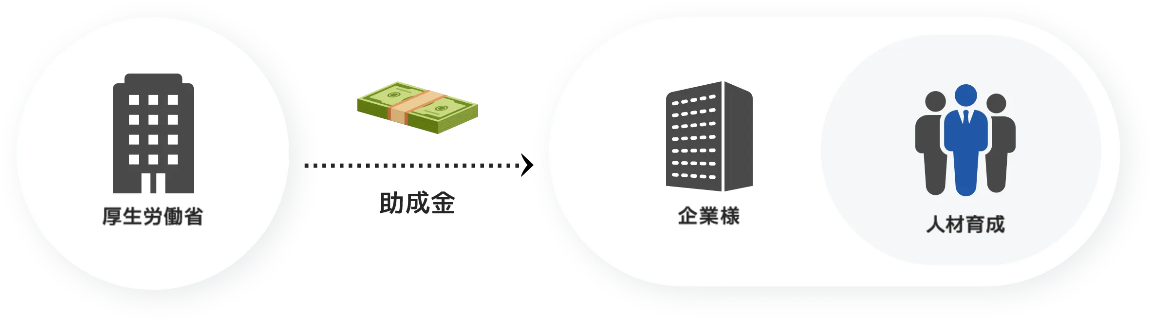 人材開発支援助成金は、企業様が雇用する労働者に対して、職務に関連した専門的な知識及び技能を習得させるための職業訓練等を計画に沿って実施した場合等に、訓練経費や訓練期間中の賃金の一部等を助成する制度です。
